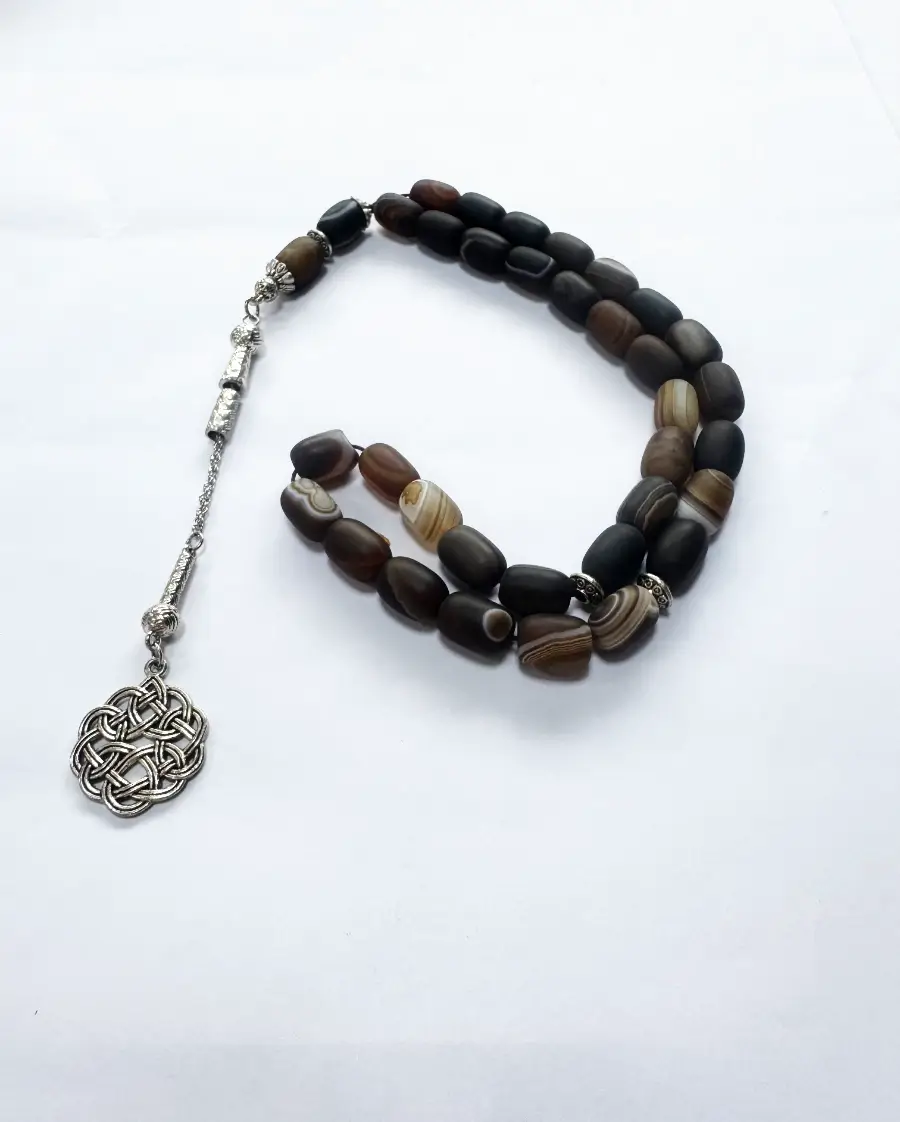 Authentic Sulemani Agate Cylinder Islamic Prayer Beads Silver Tassel